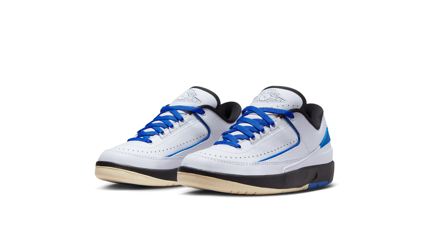 The Air Jordan 2 Low “Varsity Royal” brings a fresh update to a timeless silhouette. Featuring a smooth white leather upper contrasted with vibrant royal blue accents, this pair delivers a clean yet bold style. The black midsole and outsole add depth, while the vintage off-white sole provides a subtle aged look.